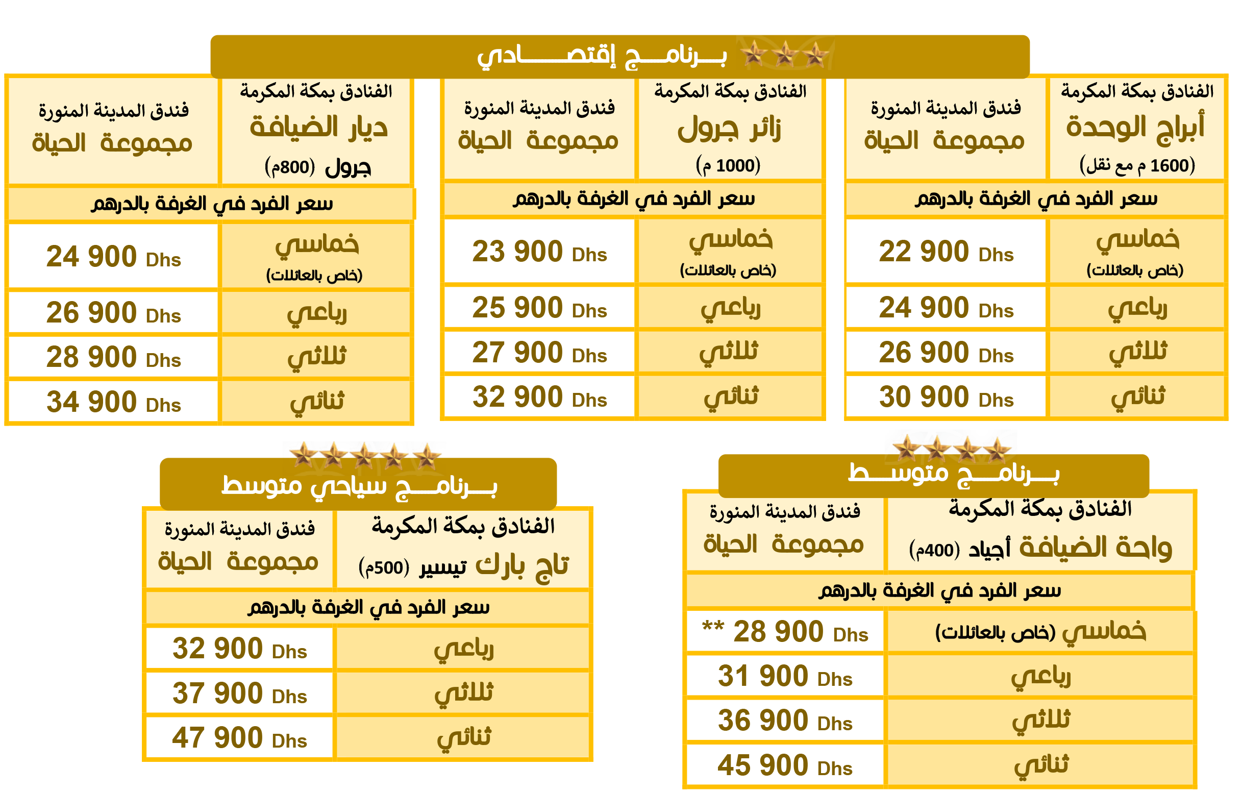 السكن بمكة و المدينة في الفنادق المذكورة اعلاه